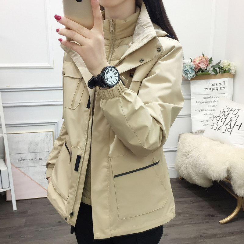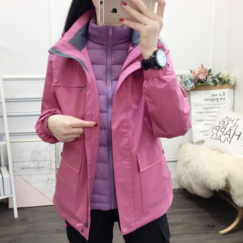 Куртка, утепленный вкладыш с пухом, съемный ветрозащитный водонепроницаемый альпинистский комплект, «три в одном»