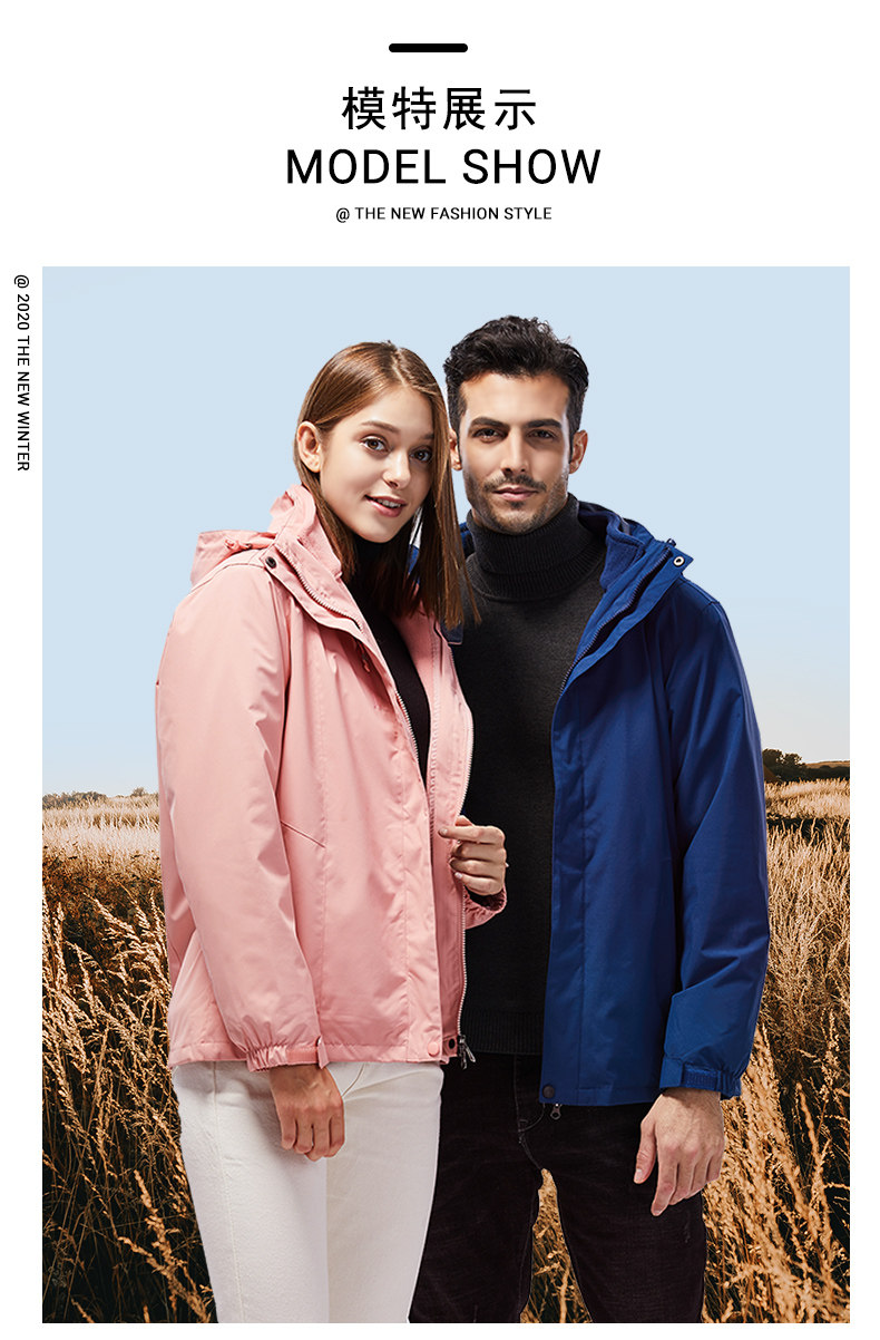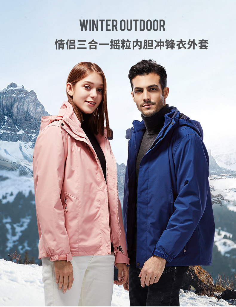 Съемная дорожная ветрозащитная утепленная зимняя удерживающая тепло куртка для влюбленных, «три в одном», большой размер