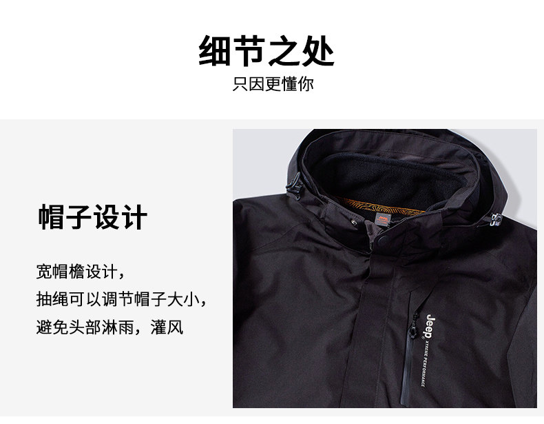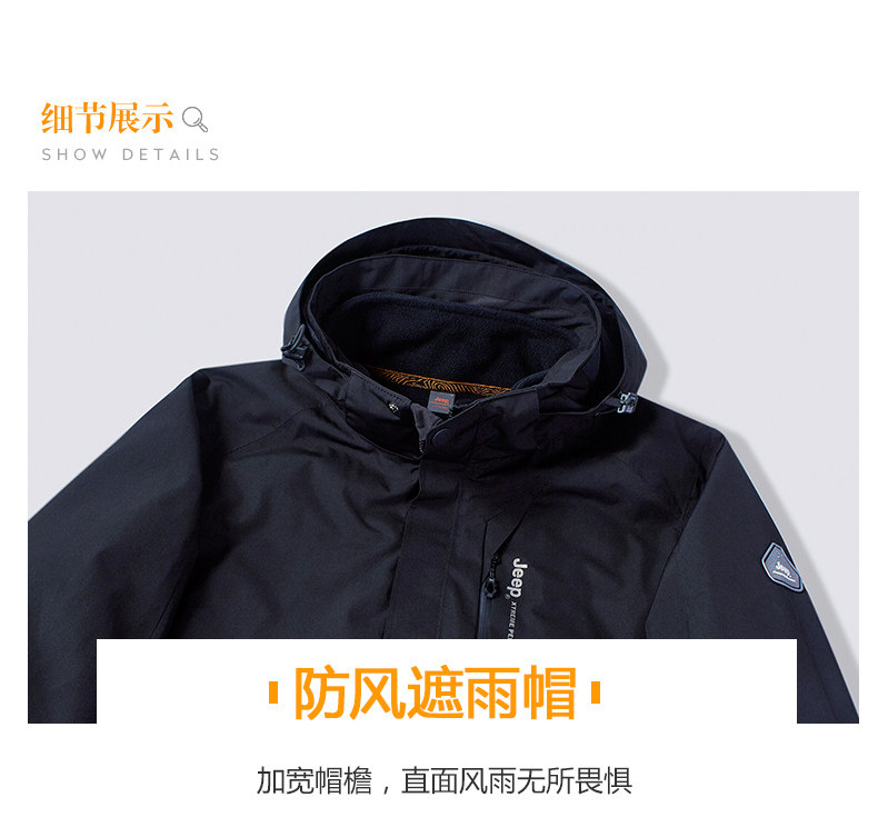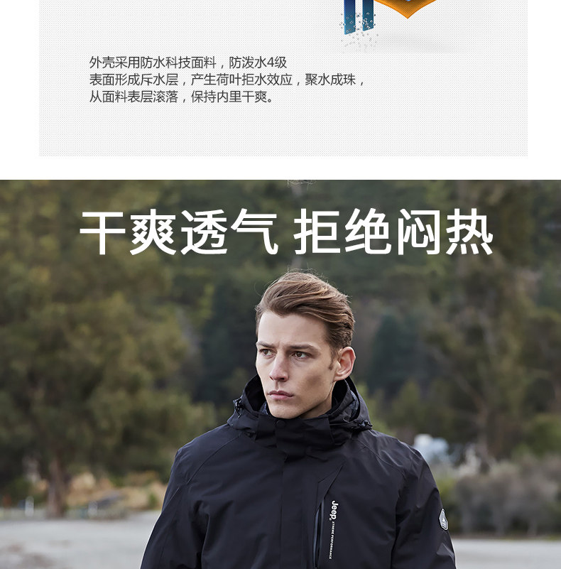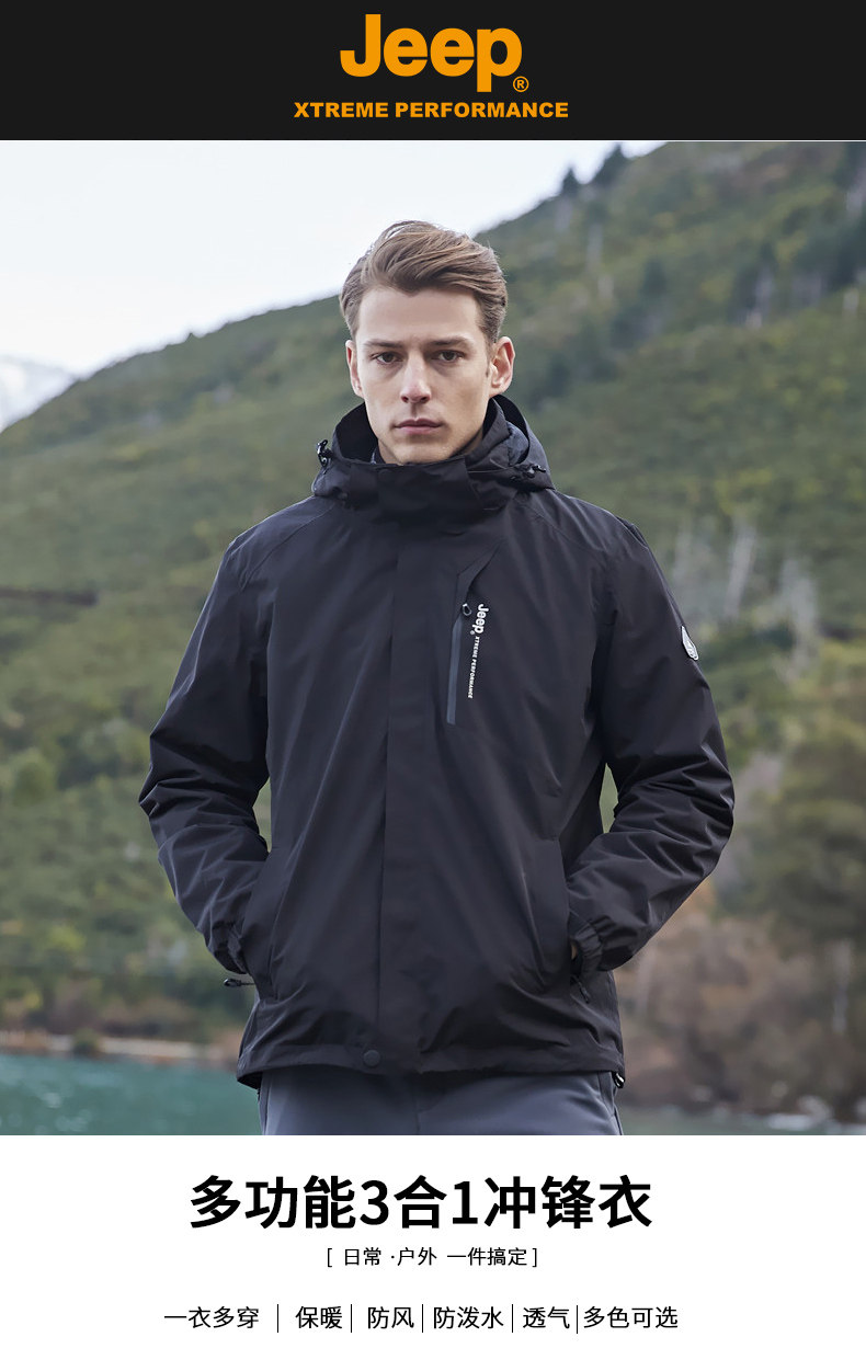 Jeep, водонепроницаемая утепленная удерживающая тепло съемная альпинистская ветрозащитная куртка для отдыха, «три в одном»