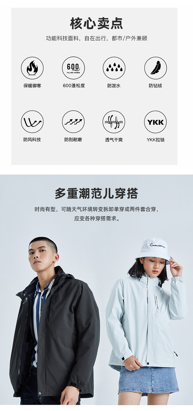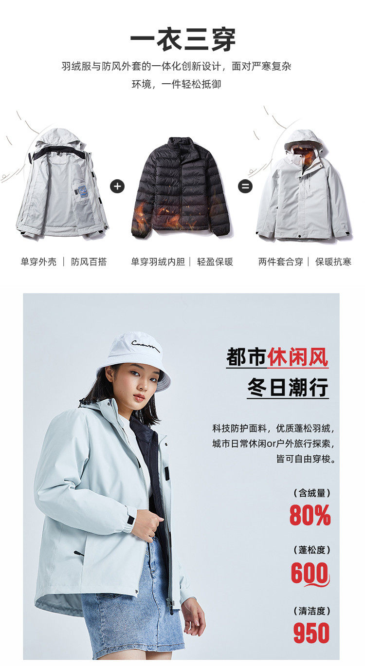 Вкладыш с пухом, куртка подходит для мужчин и женщин, съемный утепленный дорожный комплект для скалозалания для работы, «три в одном»