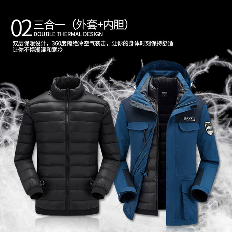Куртка с пухом, съемный утепленный вкладыш, лыжный костюм, «три в одном»