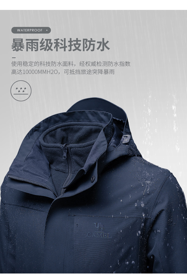 Водонепроницаемая ветрозащитная дорожная альпинистская куртка подходит для мужчин и женщин, «три в одном»