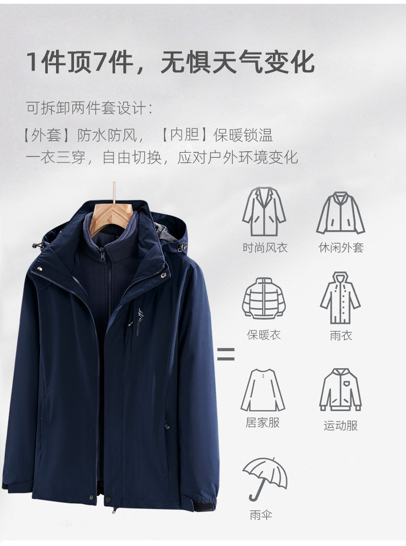 Утепленная зимняя куртка, ветрозащитный водонепроницаемый лыжный альпинистский плащ, «три в одном», большой размер