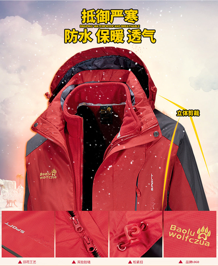 Демисезонная удерживающая тепло съемная дорожная куртка подходит для мужчин и женщин для скалозалания, «три в одном»