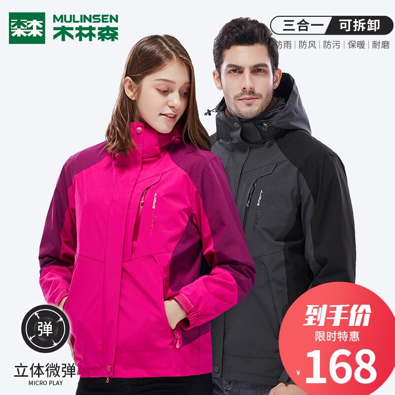 Съемная утепленная демисезонная ветрозащитная дорожная альпинистская куртка подходит для мужчин и женщин, «три в одном»