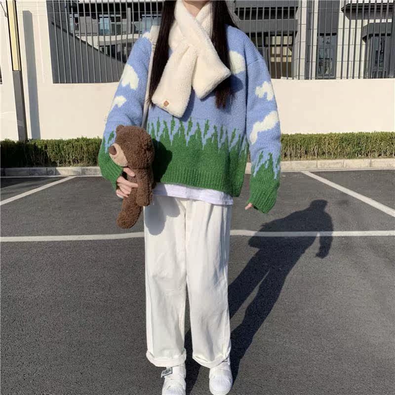Японский демисезонный трикотажный свитер, свободный крой