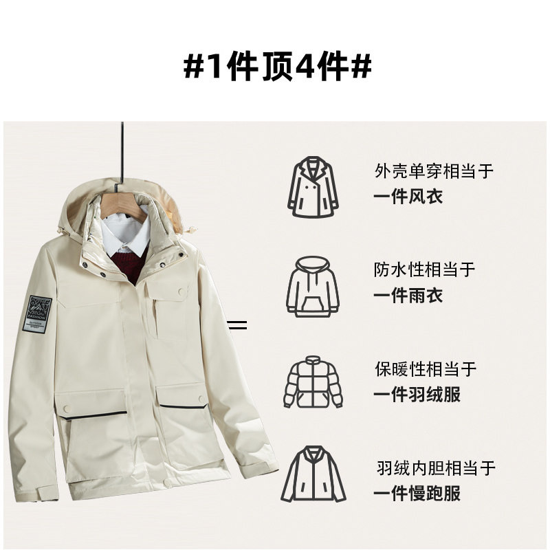 Дорожная демисезонная куртка, комплект, съемный водонепроницаемый камуфляжный альпинистский вкладыш с пухом, «три в одном»