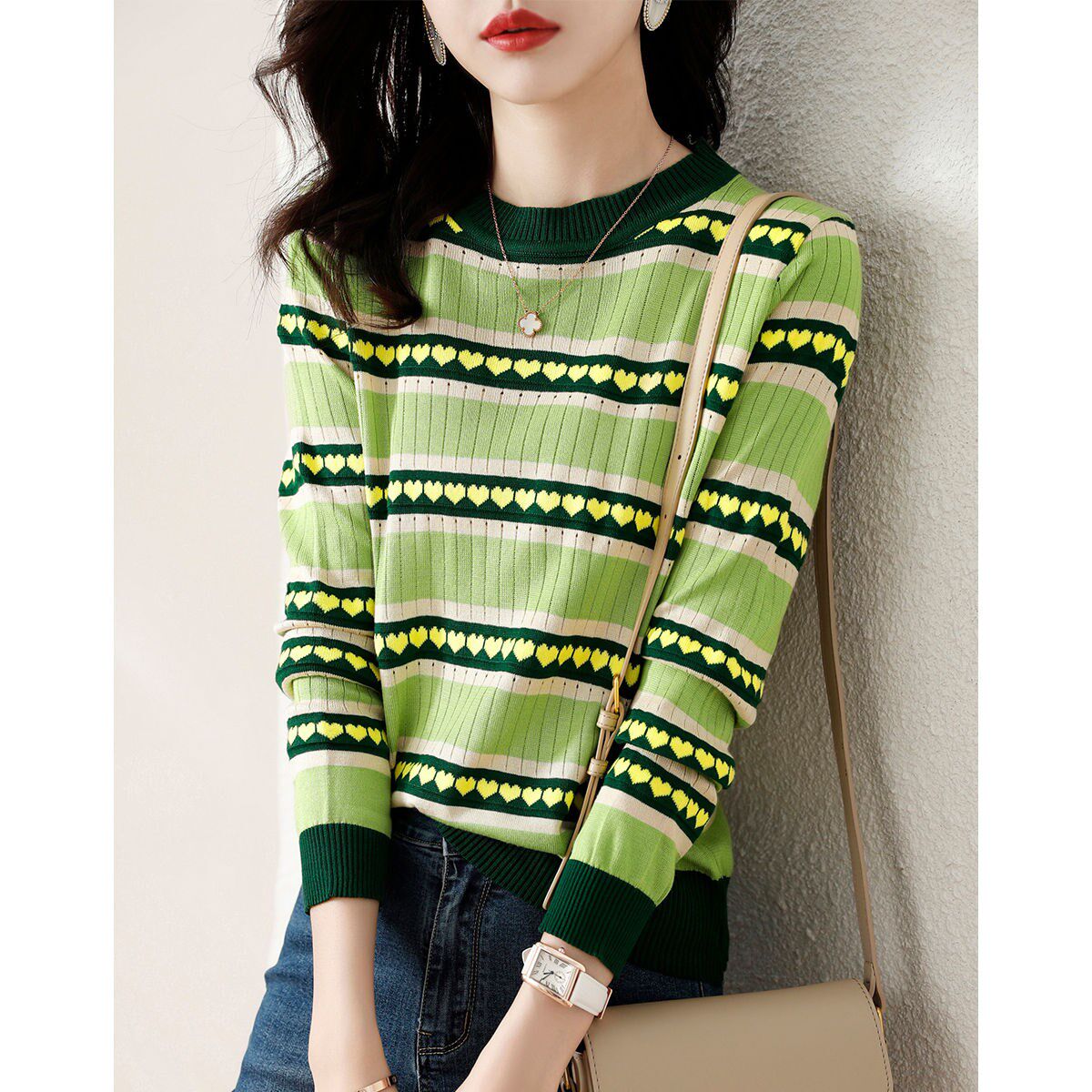 Осенний комфортный трикотажный свитер с круглым воротником, коллекция 2021