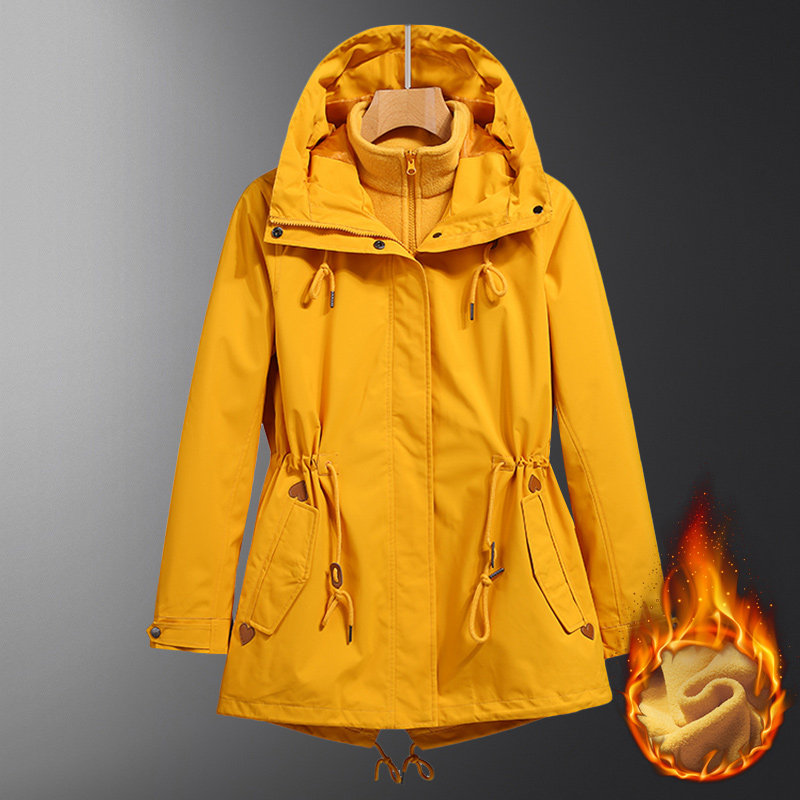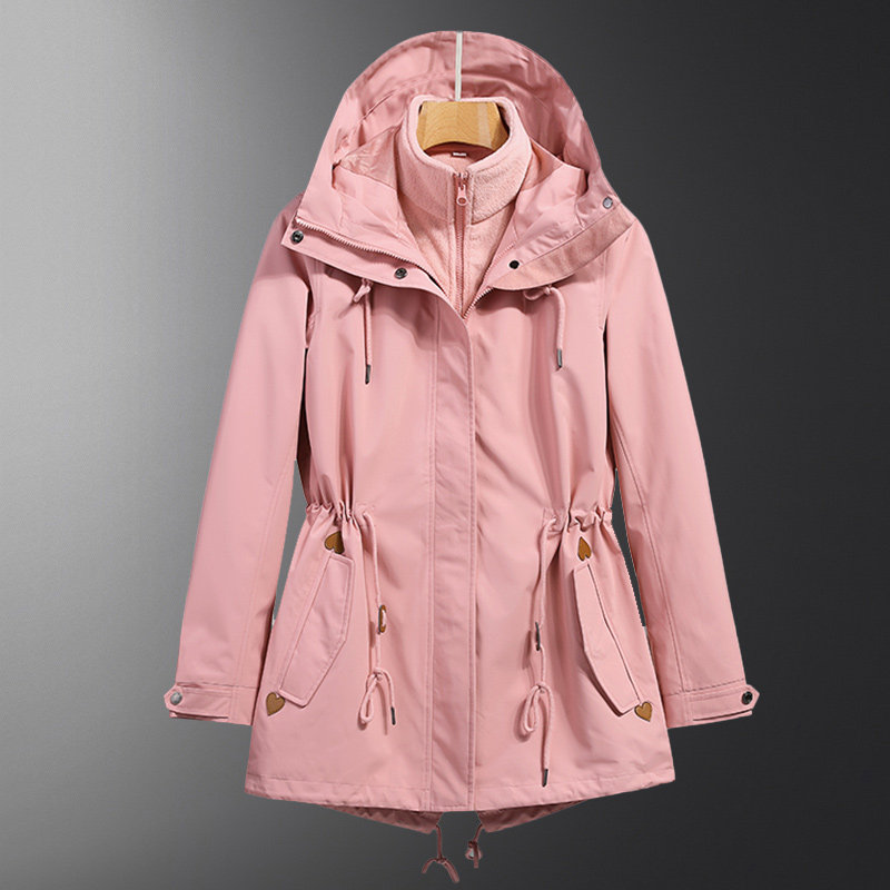 Дорожная длинная утепленная бархатная съемная альпинистская куртка, средней длины, городской стиль, «три в одном»