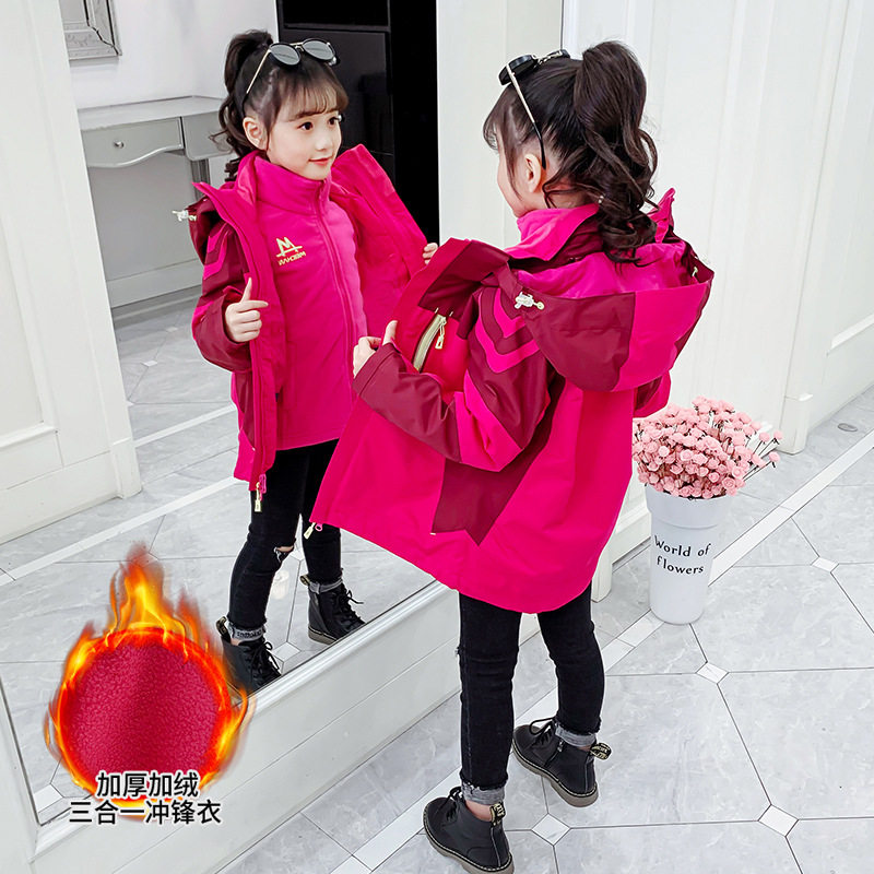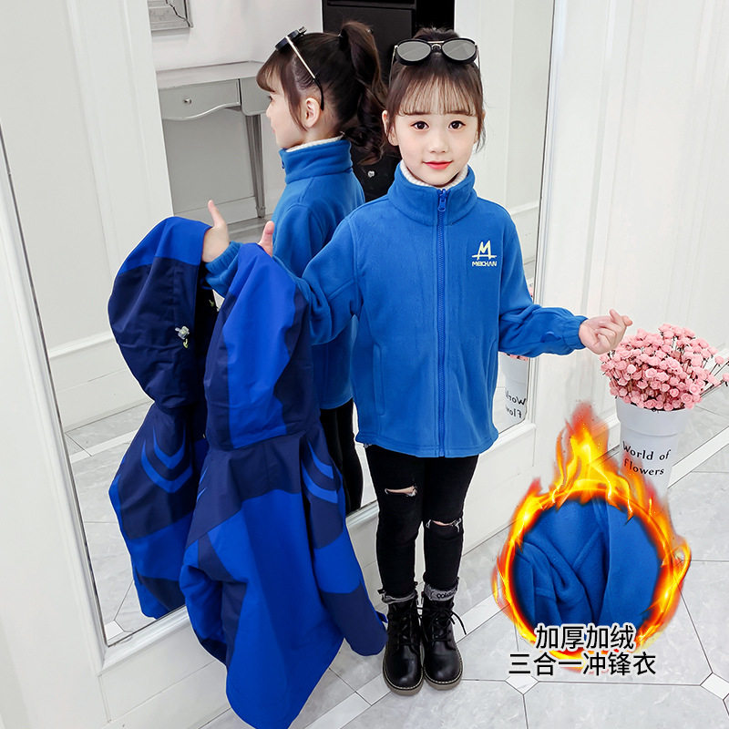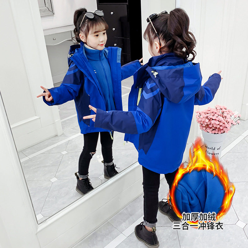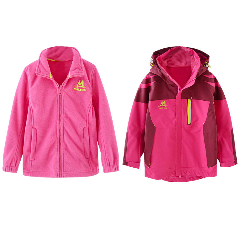 Детская ветрозащитная водонепроницаемая утепленная съемная куртка подходит для мужчин и женщин, «три в одном», подходит для подростков
