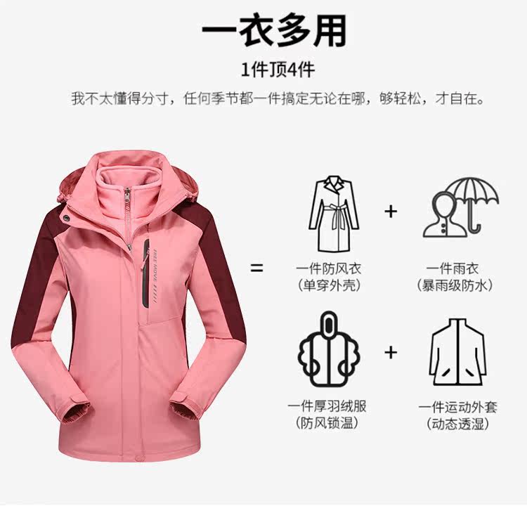 Куртка, бархатный вкладыш, дорожный спортивный комплект, альпинистский ветрозащитный плащ, «три в одном»