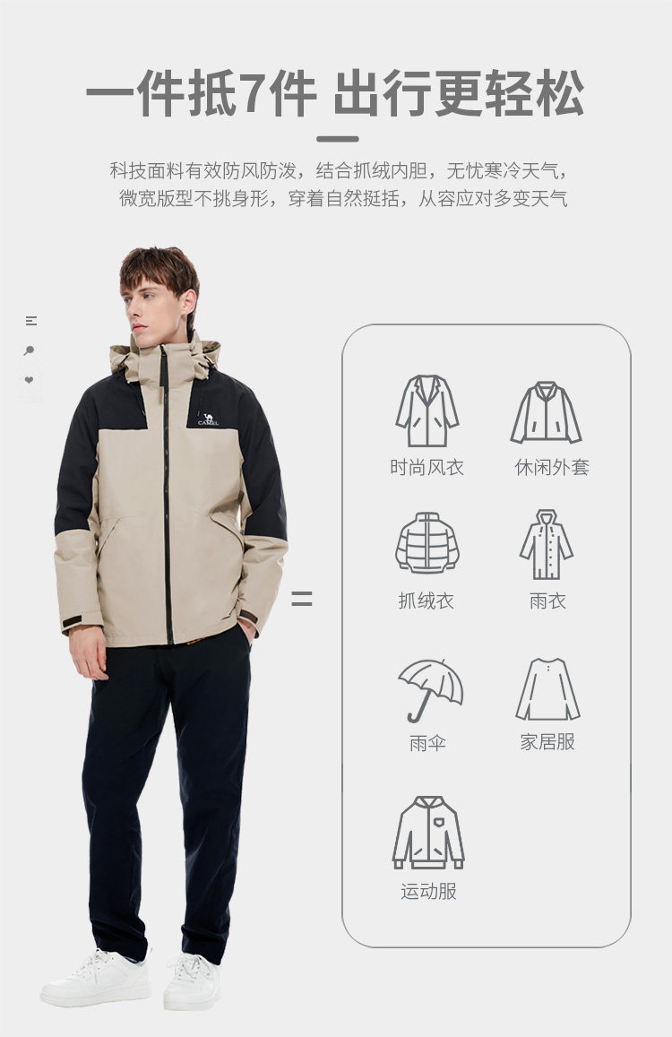 Дорожная ветрозащитная водонепроницаемая утепленная альпинистская куртка подходит для мужчин и женщин, «три в одном»