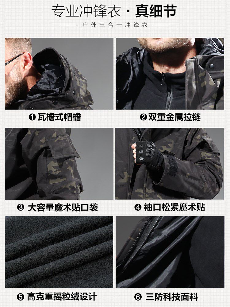 Куртка, съемный утепленный камуфляжный альпинистский комплект, «три в одном»