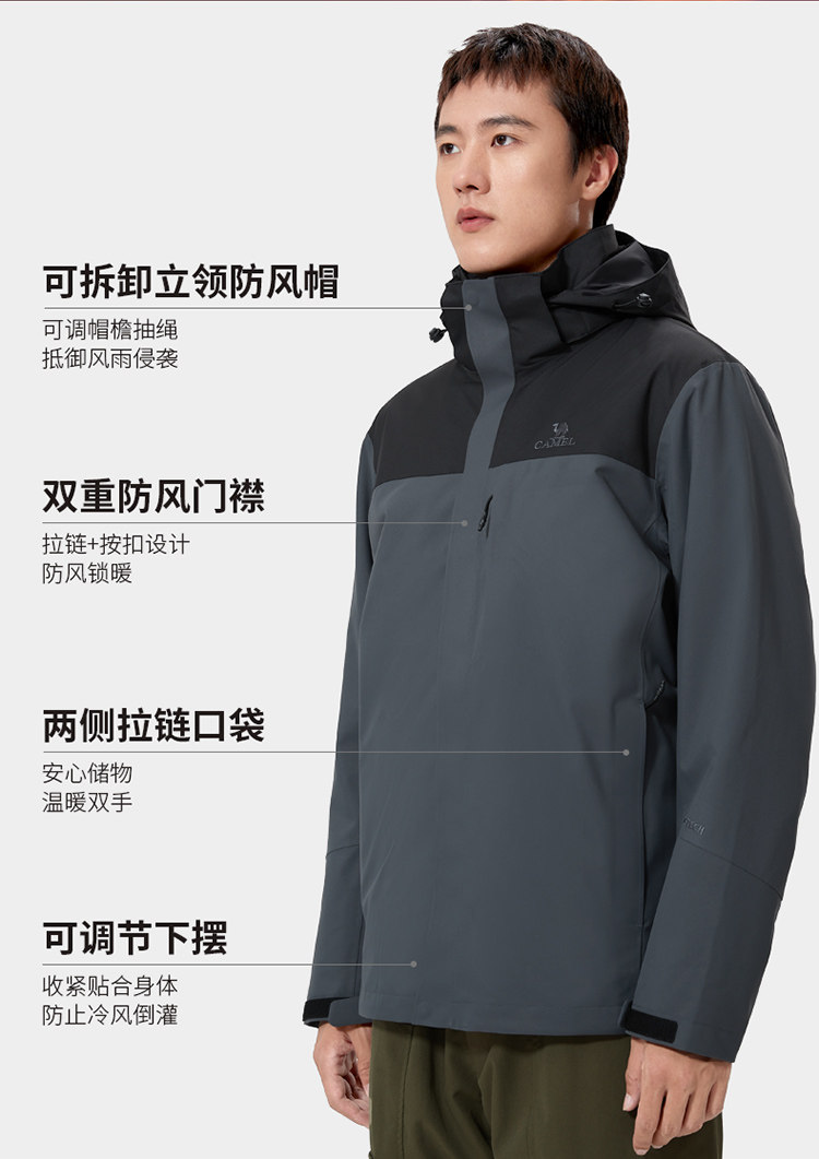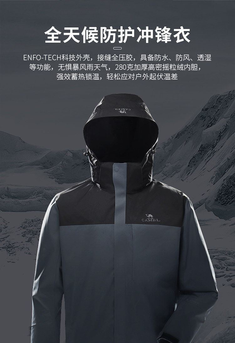 Водонепроницаемая куртка, ветрозащитный бархатный альпинистский комплект, «три в одном»