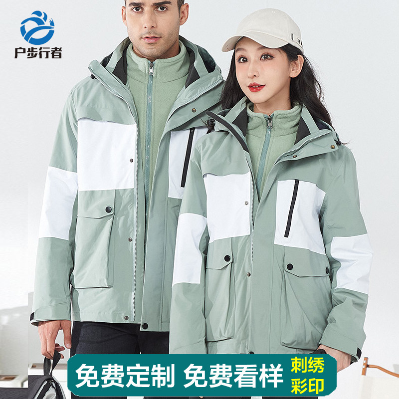 Элитная ветрозащитная куртка для ходьбы подходит для мужчин и женщин, водонепроницаемый удерживающий тепло вкладыш с пухом, «три в одном», делается под заказ, с печатью вашего логотипа