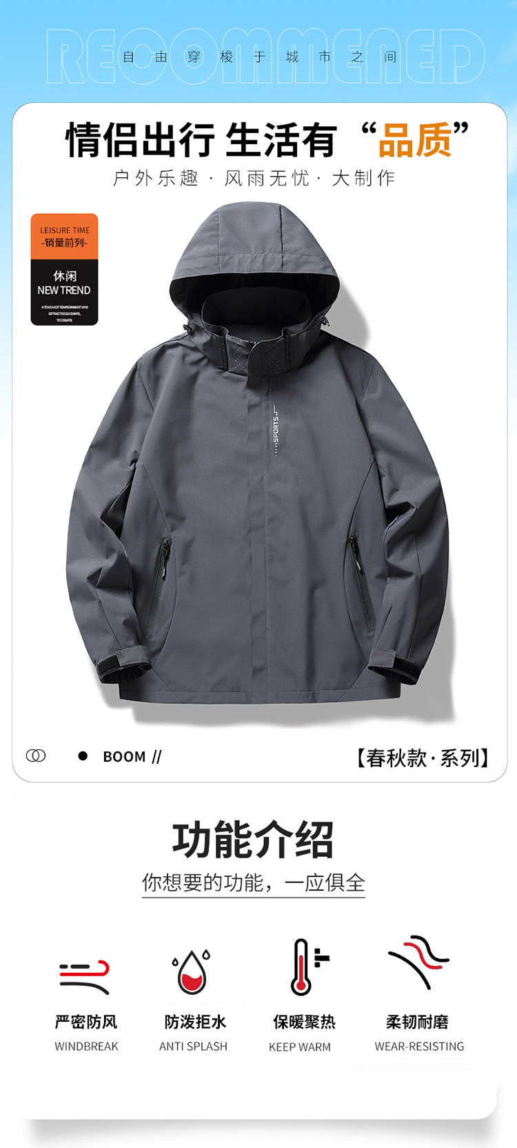 Playboy, дорожная спортивная черная ветрозащитная водонепроницаемая альпинистская куртка подходит для мужчин и женщин