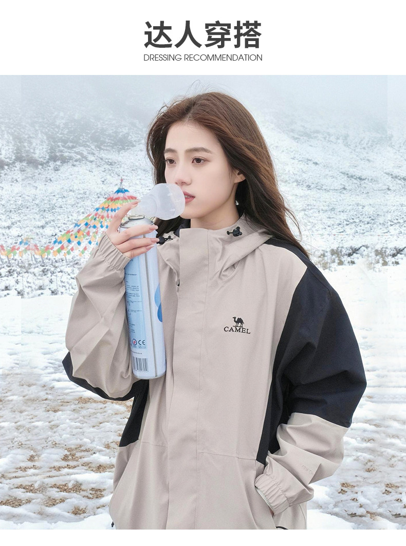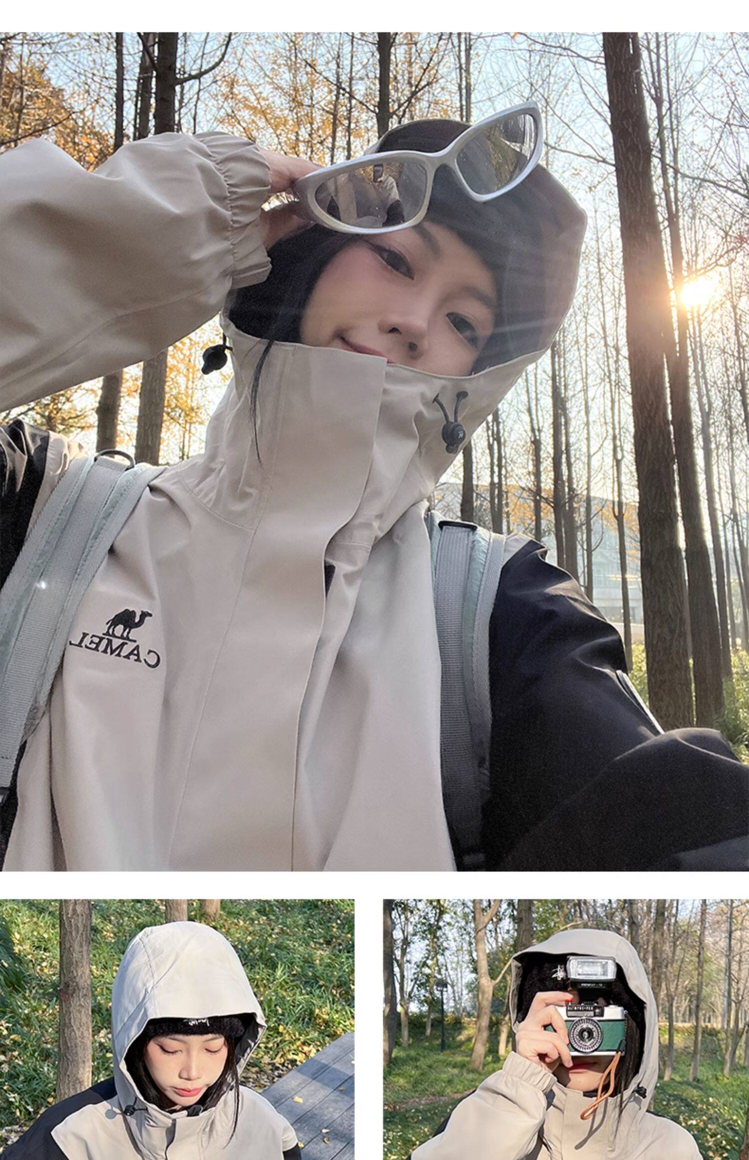 [Серия Panda] Верблюдная трехпроницаемая однопроизводительная куртка женская ветер -Проницаемый сон, анти -спящий жесткий лазанин