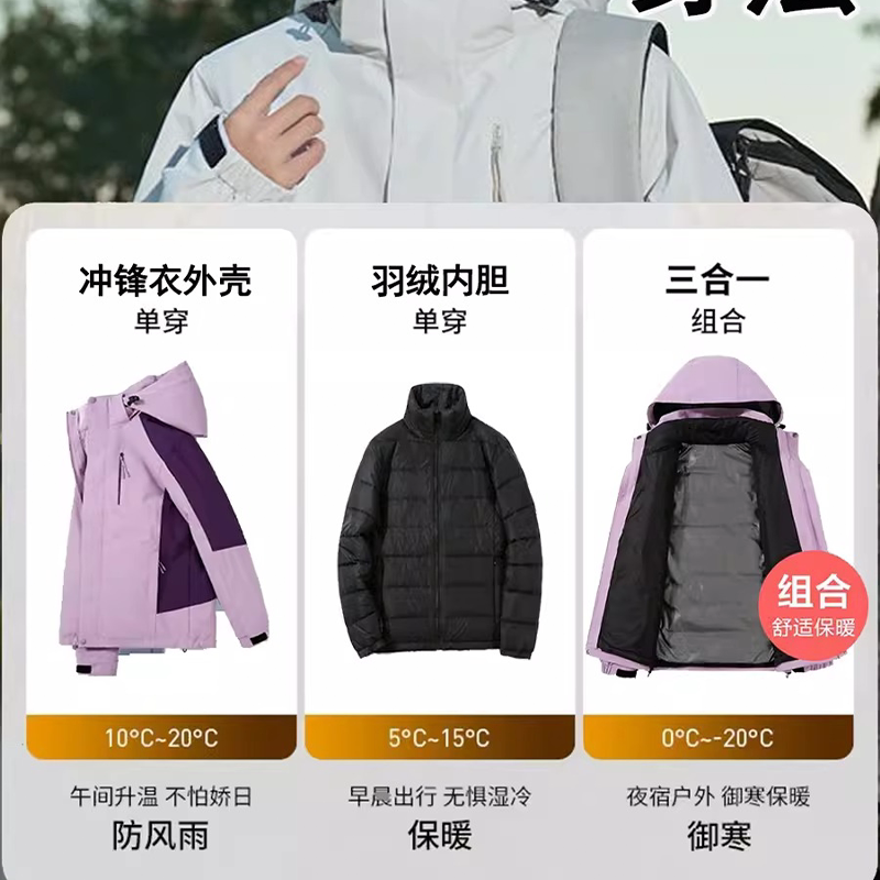 Сиреневая цветная удерживающая тепло куртка для матери, ветрозащитный бархатный вкладыш, «три в одном», утиный пух