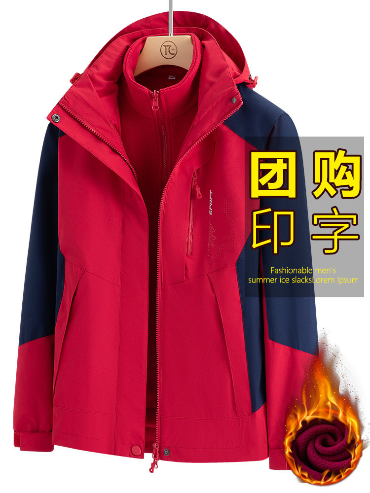 Бордовая альпинистская куртка для работы, «три в одном», делается под заказ, с печатью вашего логотипа