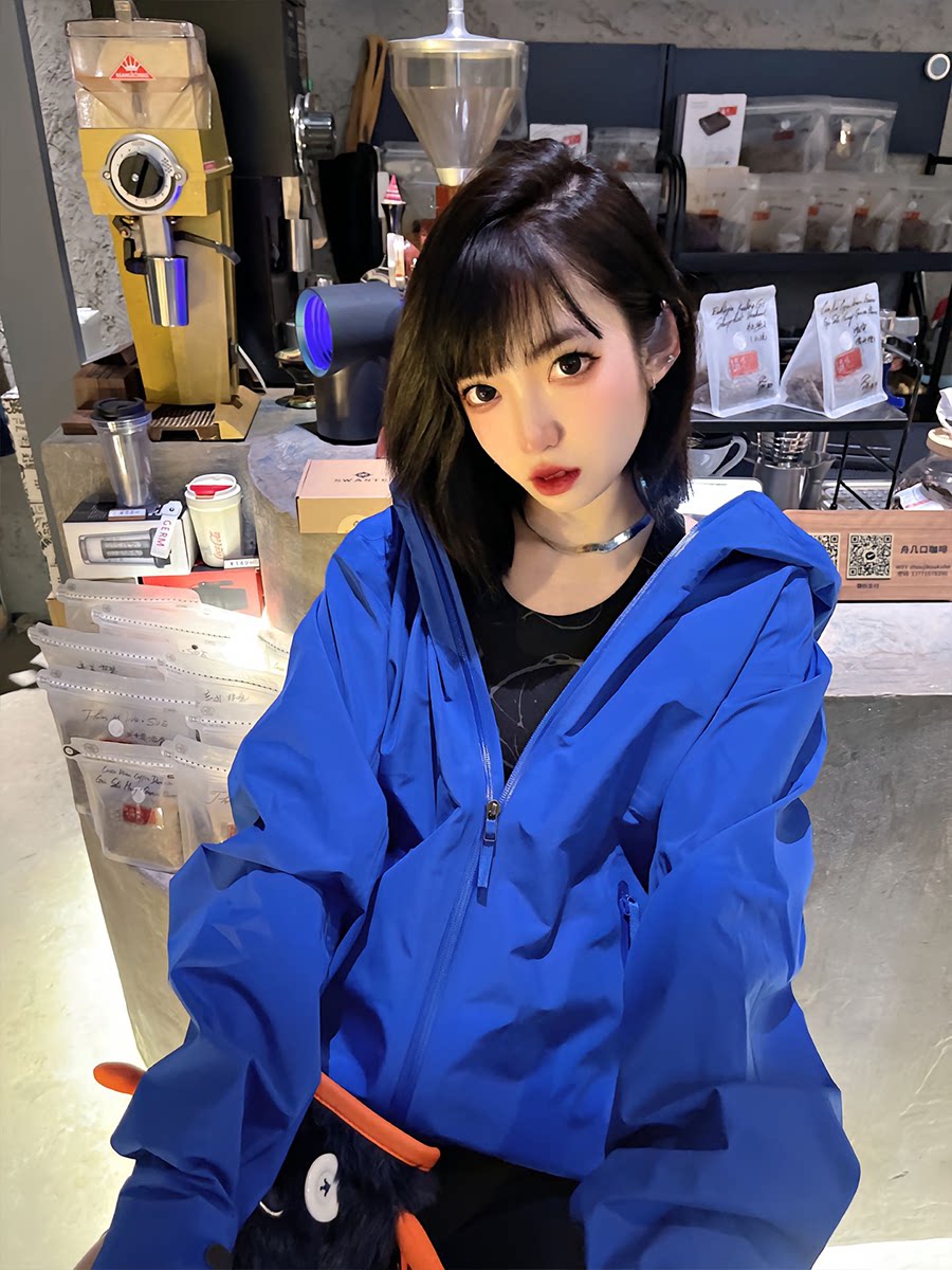 Синяя весенняя дорожная ветрозащитная куртка подходит для пеших прогулок подходит для мужчин и женщин, в американском стиле