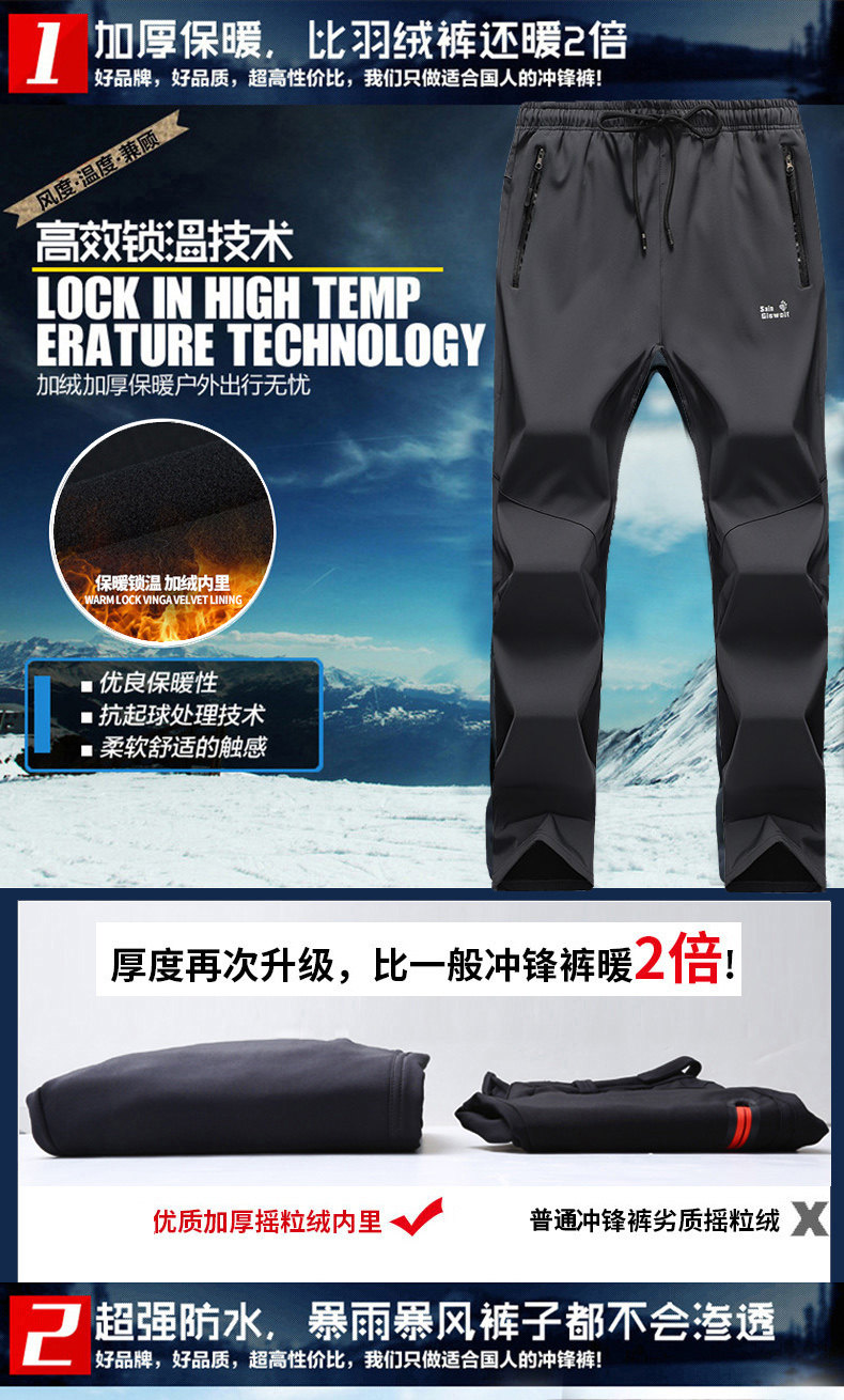 Дорожные демисезонные утепленные ветрозащитные водонепроницаемые бархатные альпинистские лыжные удерживающие тепло штаны, большой размер