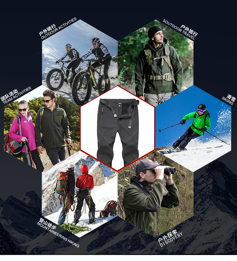 Зимние дорожные ветрозащитные водонепроницаемые альпинистские утепленные спортивные штаны