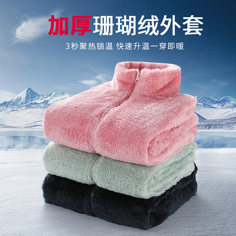 Коралловая бархатная дорожная двусторонная куртка, удерживающий тепло флисовый вкладыш, увеличенная толщина