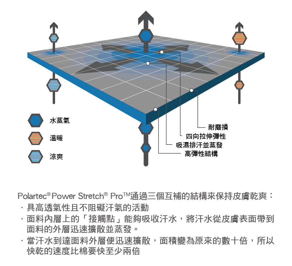 Поверхность устойчивого к ультра -искушению нейлона очень сильная, теплая, упругая Polartec PowerStretch Pro