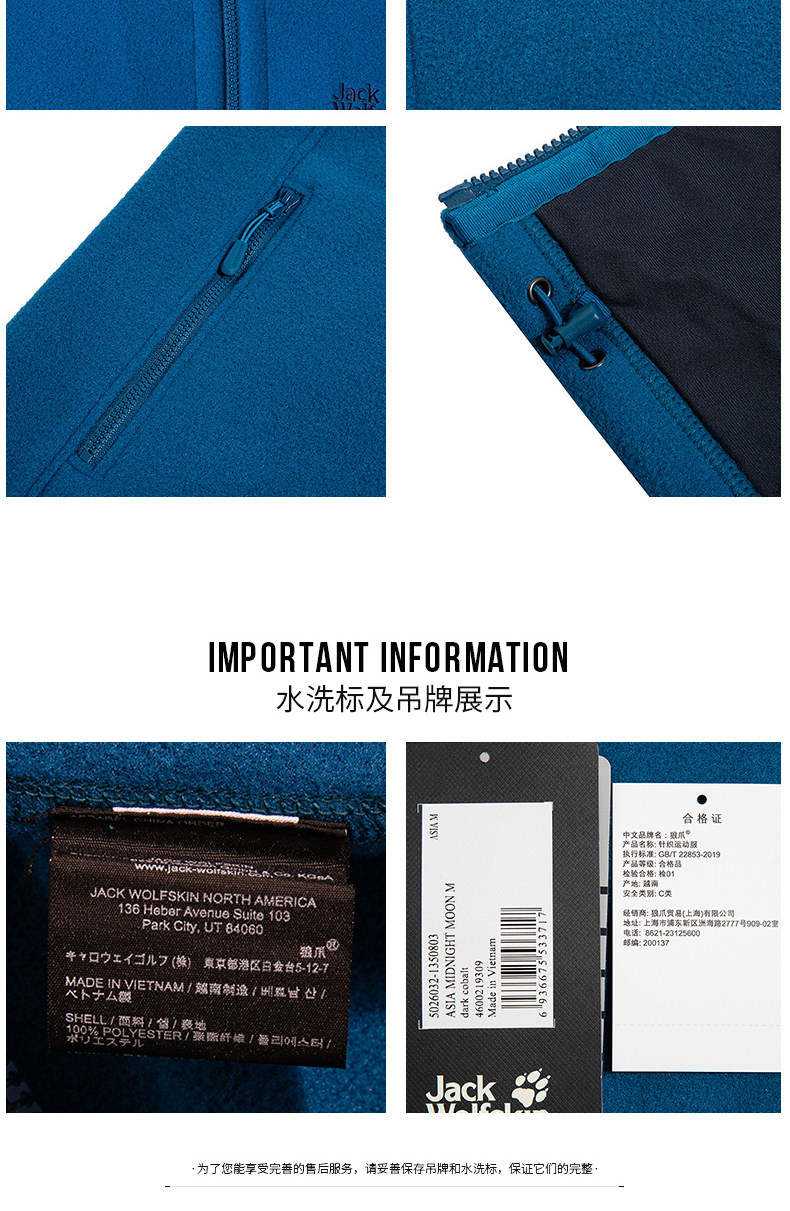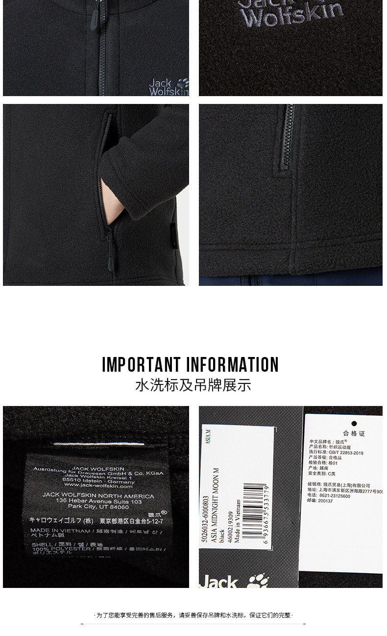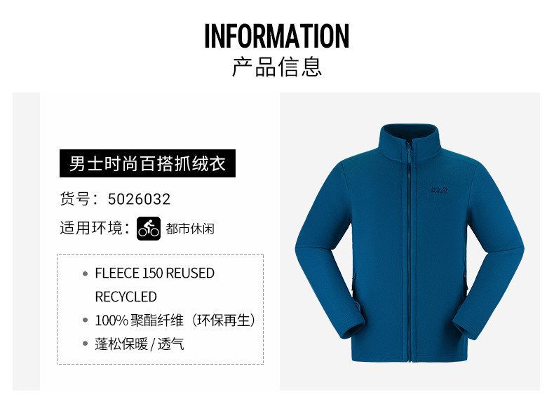 [22秋冬Jackwolfskin狼爪男户外内胆保暖摇粒绒立领抓绒衣5026032]
