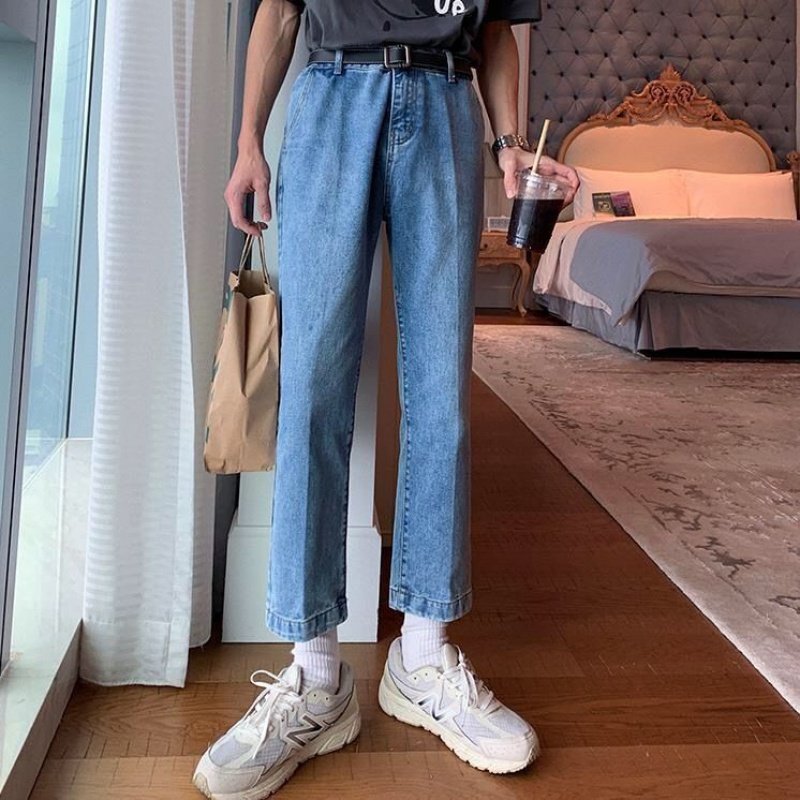 Демисезонные штаны, трендовые джинсы, свободный прямой крой, в корейском стиле