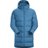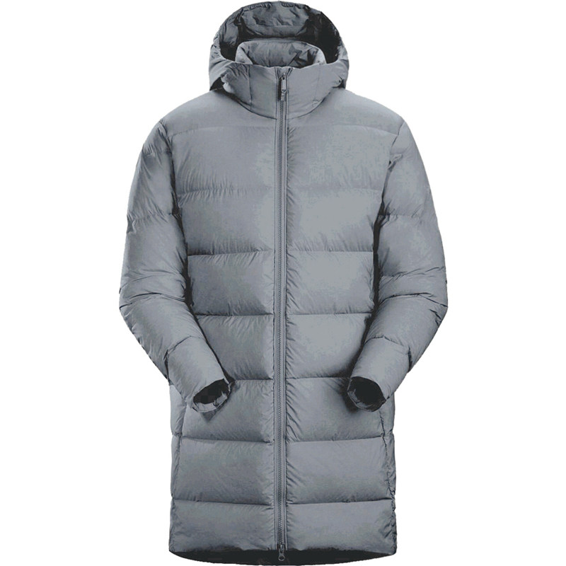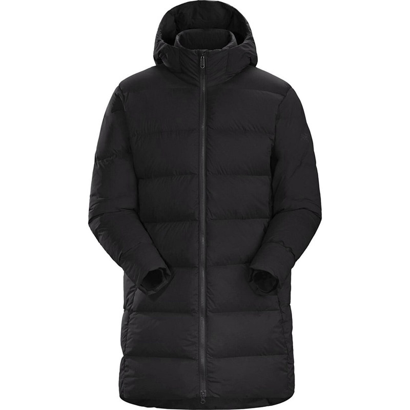 Только таким образом можно добиться такой степени сжатия этого длинного пухового пальто.