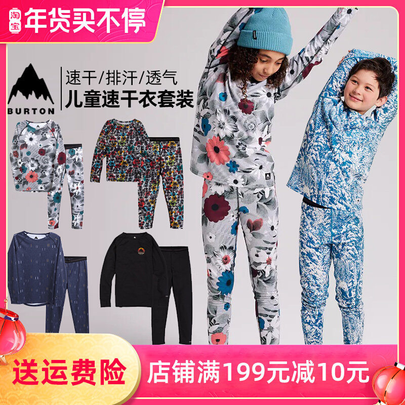 Burton, детское быстросохнущее нижнее белье, дышащий удерживающий тепло комплект, лыжный спортивный комбинезон для взрослых, США, впитывает пот и запах