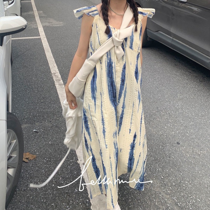 Летнее свободное платье, юбка, платье без рукавов без рукавов, длинное платье-комбинация, А-силуэт, по фигуре, с рукавом