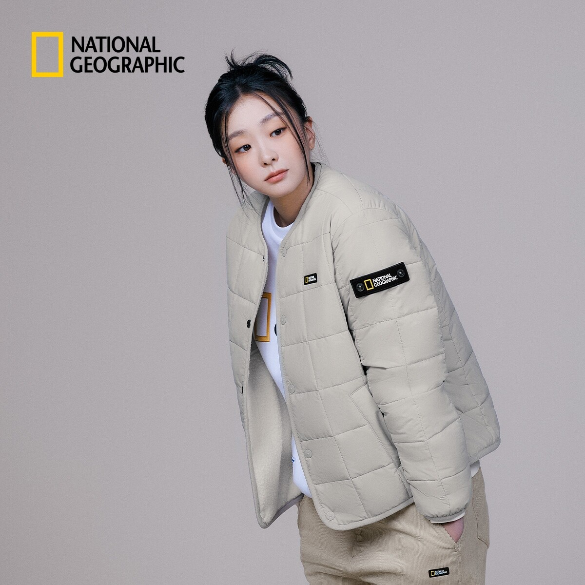 National geographic, легкий и тонкий ретро двусторонний пуховик подходит для мужчин и женщин с круглым воротником для отдыха, с печатью вашего логотипа