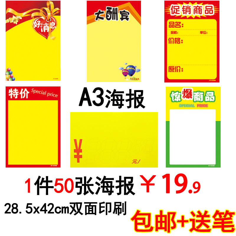 A3 Двойная поп -рекламная бумага море газета Blank Supermarket Supermarket Shopping Mall Аптека Рекламная ручная цена цена плаката цена