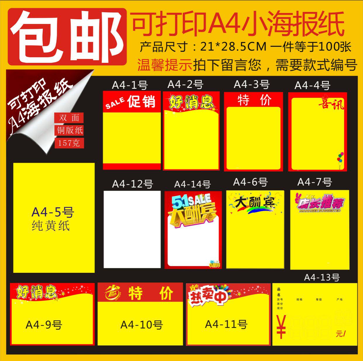 A4 Рукопись Good News Двойная газета Pop Sea может печатать рекламную рекламу Специальные карты цены на супермаркет 100 листов карты