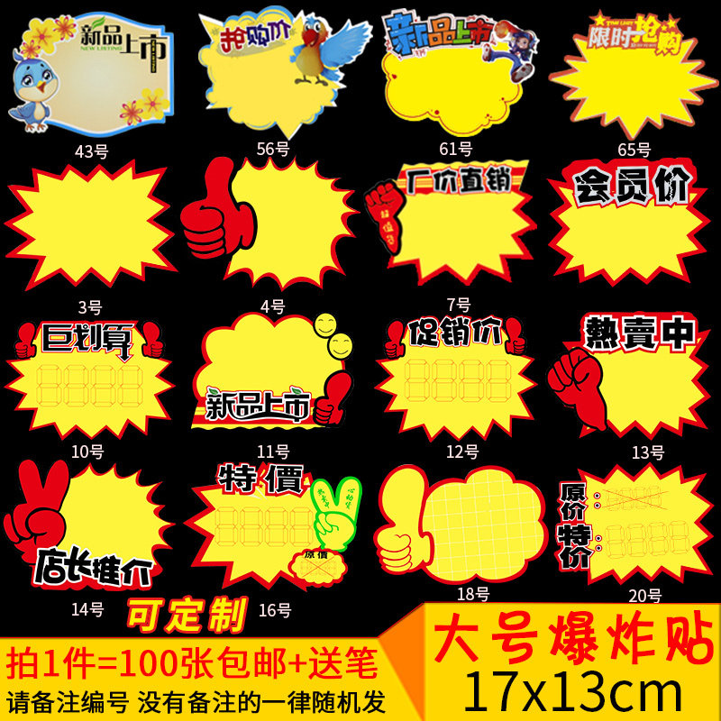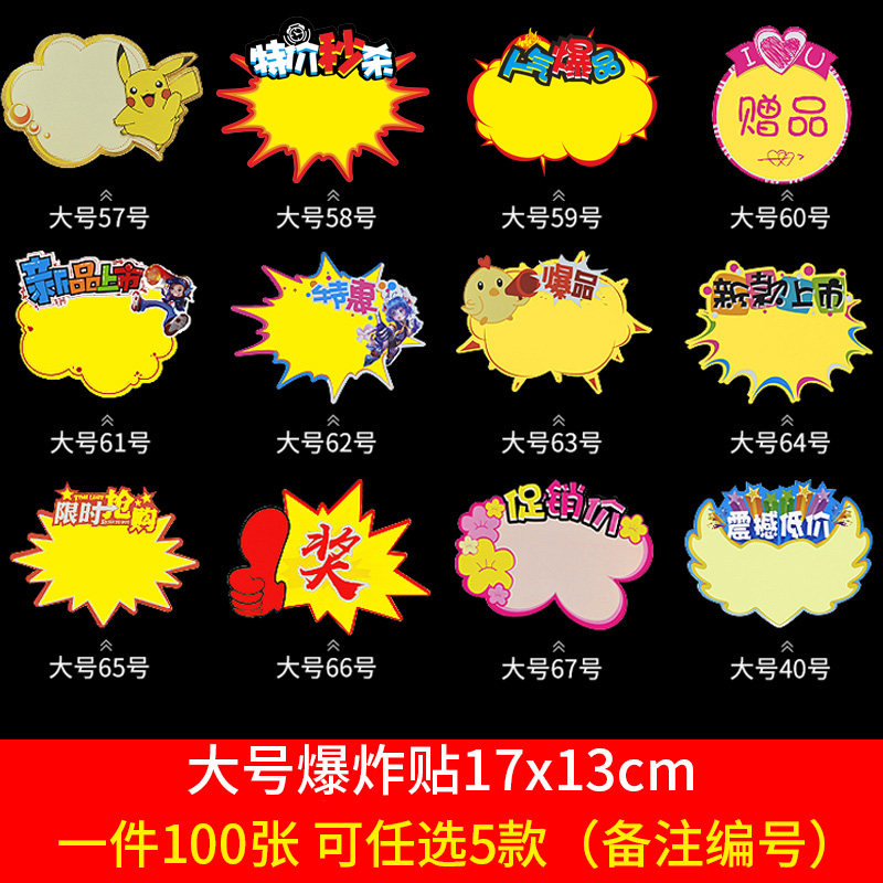 Крупные наклейки на взрыв 100 Новая поп -рекламная бумага цена цена карта бренд бренд специальная цена цена цены цены подписи и настройку
