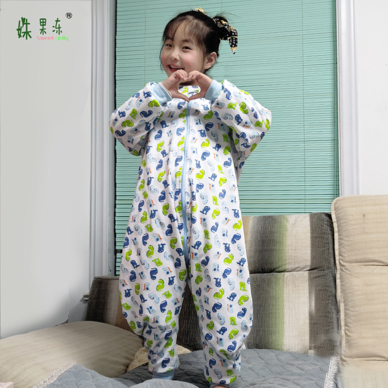 Детский двухэтажный хлопковый летний спальный мешок, пижама, лонгслив, осенний