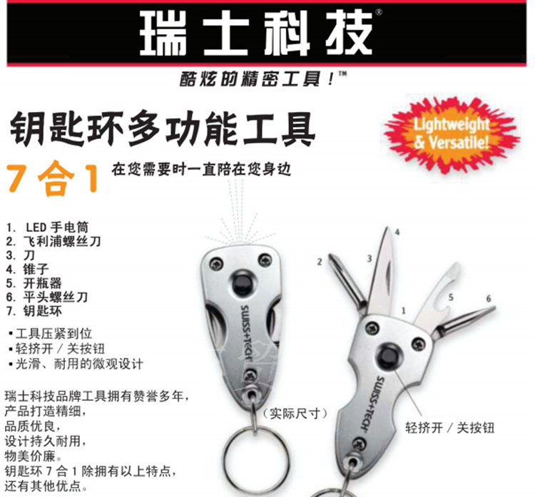 7 -1 -1 -клавишное кольцо многофункциональный инструмент,ДвигаясьКольцо клавиши на кольце клавиши,включатьодинфонарик,Перекрестная отвертка,нож,Конус,Бутылка,квартираотвертка,Ключевая пряжкаСущность