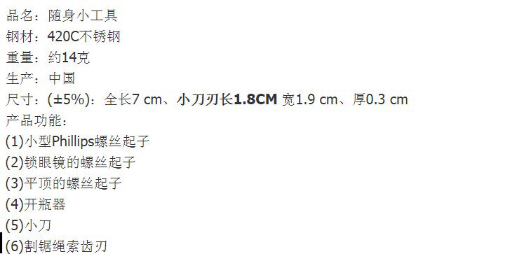 Наружный многофункциональный мини -нож 6 -в -1 комбинированный инструмент складной складной нож Ключе