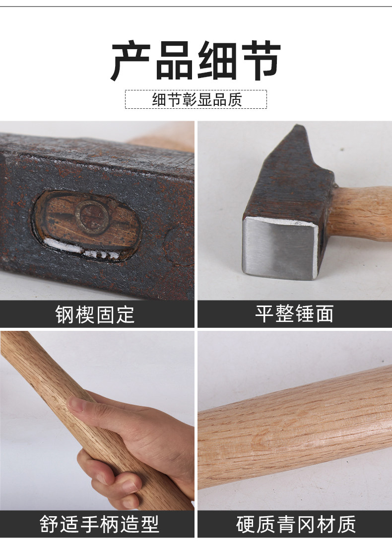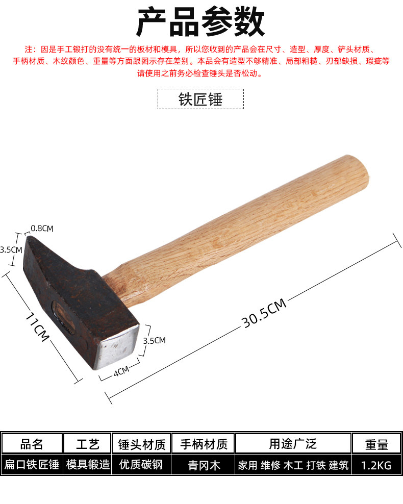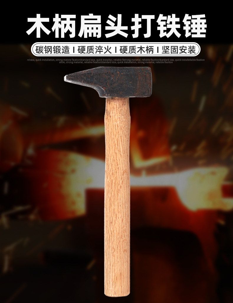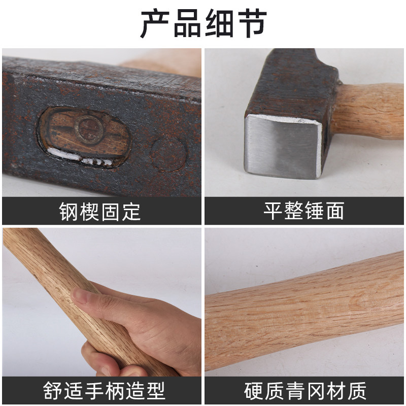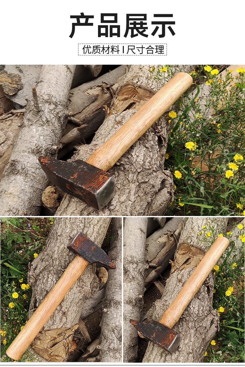 Ковка из углеродистой стали, закалка, закалка, деревянная ручка, геологический молот с плоской головкой, кузнечный молот, молот с плоской горловиной, молоток из листового металла