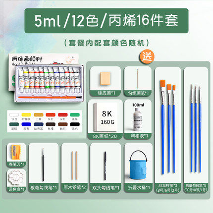 Акрил, комплект, 5 мл, 12 цветов, 16 шт