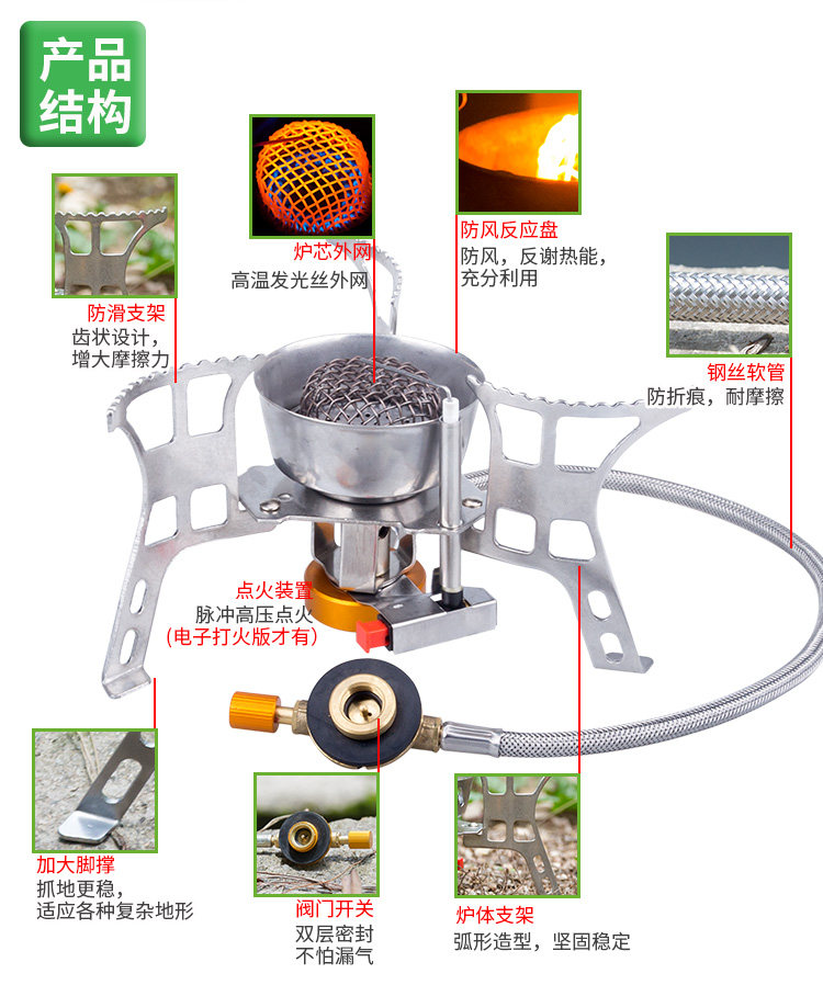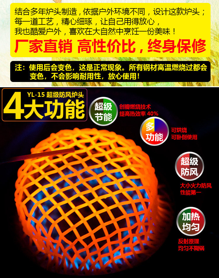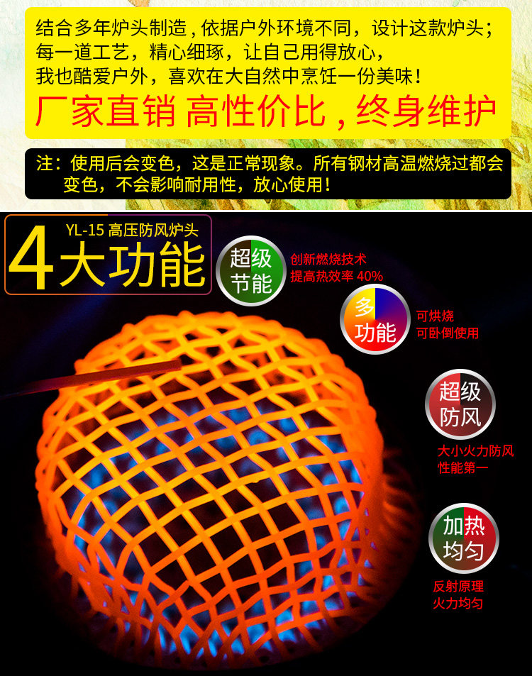 Подлинная ветрозащитная печь головка наружная воздушная печь Переносная дикая печь оборудование сплит для пикника для пикника для пикника дикий лагерь для рога