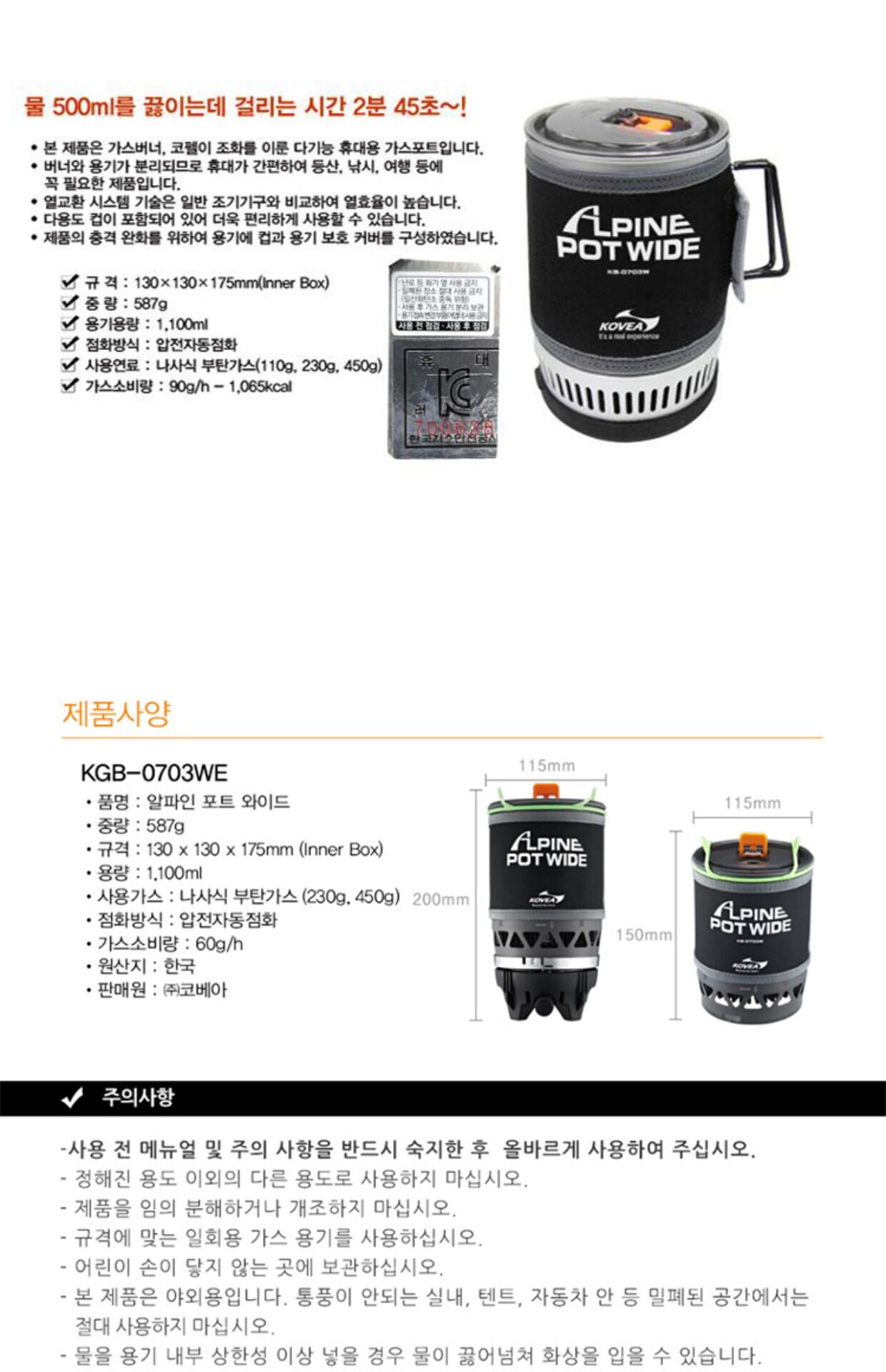 Южная Корея Kovea Outdoor Reactor Удобная печь Высокая высота выжирающая водяная плита KB-0730WU