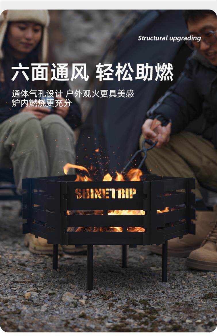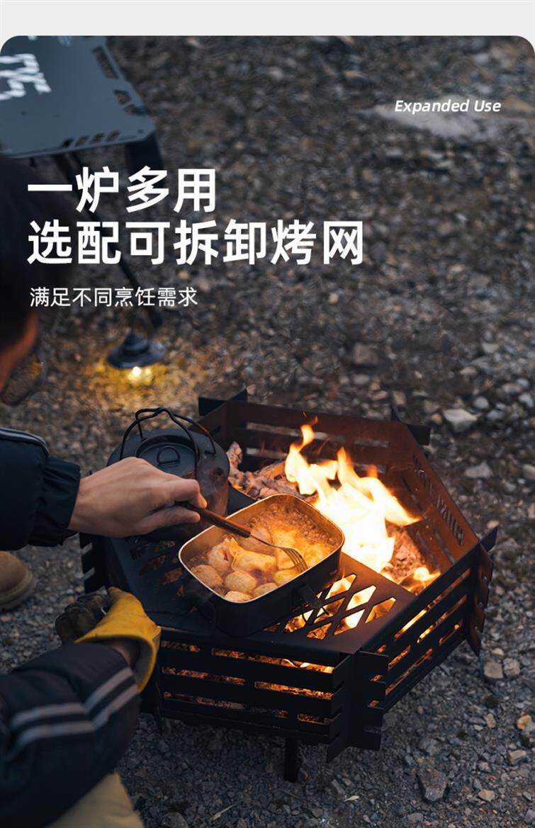 [户外露营烤火炉煮茶柴火便携拆卸耐高温碳钢不锈钢炉具焚厂家]