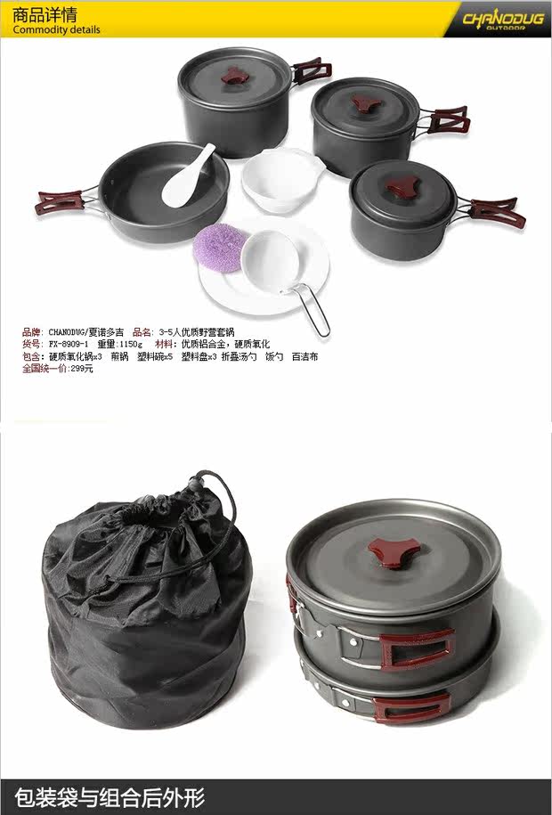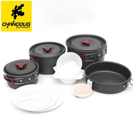 Наружная куртка, кастрюля для пикника Большая кастрюля/твердая оксидная плита+отвар+пластиковая чаша+складная суп -ложка+ложка риса