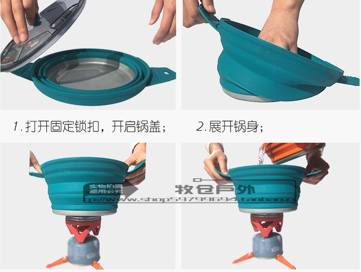 Sea to summit, дорожный портативный складной чайник, пищевой силикон