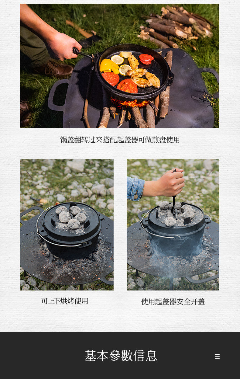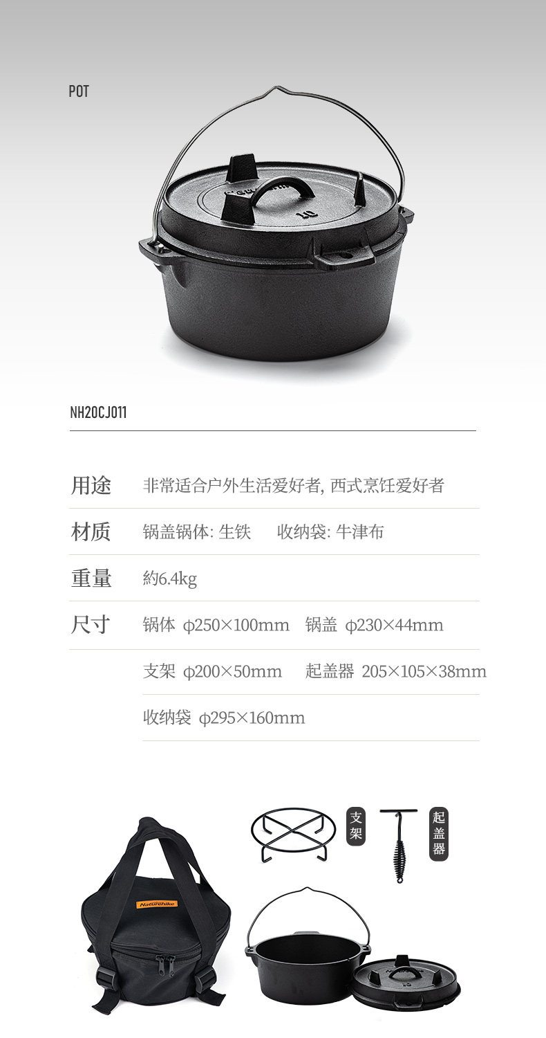 NH nuo Много -портативное барбекю для барбекю суп суп из кипящего тушеного кинчатого кастрюли чугуновые голландские наружные казармы.