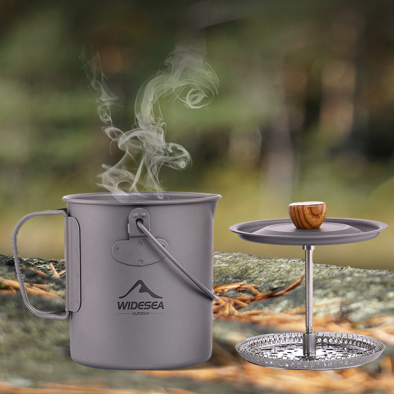 WIDESEA открытый многофункциональный чистый титан французский пресс-фильтр кофейная чашка портативный легкий складной подвесной горшок для кемпинга