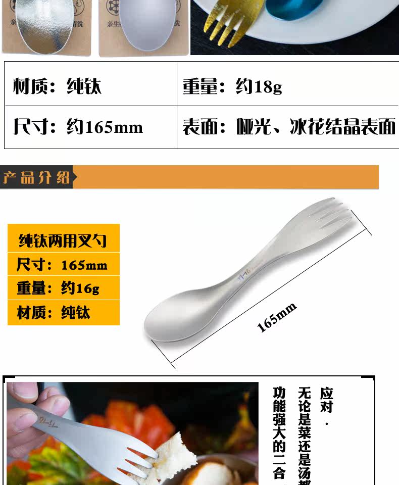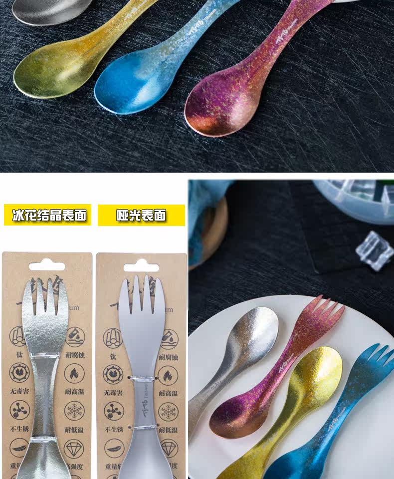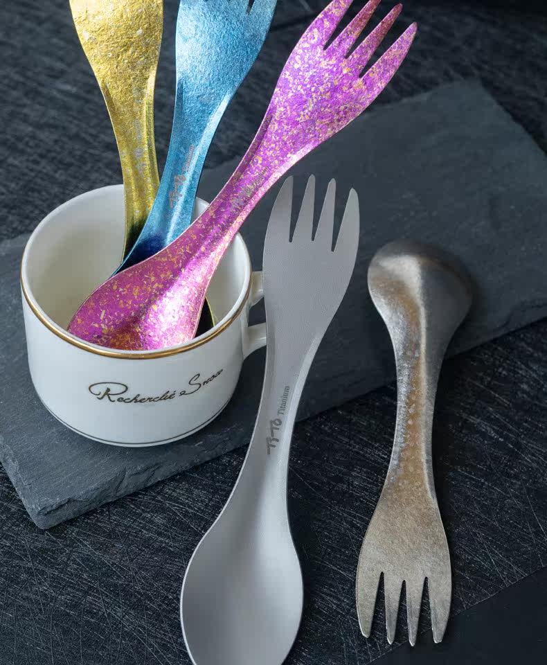 Титановый тито чистый титановый вил ложка открытого двойного использования